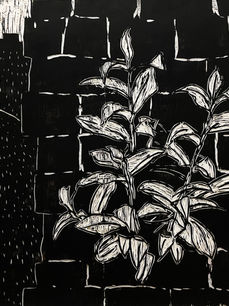 Overgrown, 2022, Mixed media on woodcut, 120 x 120 cm